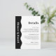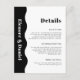 Ett elegant och modernt detaljkort för bröllop designat i klassisk svartvitt, med en fet sidvåg inslag och ett anpassade-foto. Perfekt för att dela viktig bröllop-information, t.ex. platsinriktningar, inkvartering eller färdväg, kompletterar denna minimalistiska utformning alla contemporary- eller monokroma bröllop-teman. Ett snyggt sätt att informera dina gäster samtidigt som du bibehåller en sammanhängande behålla över din bröllop-kontorssvit.