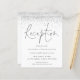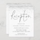 Ett budgetmässigt prist mindre än 4,5 x 5,6 tum alternativ. Finns i ett SEMI GLOSS 110 lb-kort LAGRAR, vilket är standardalternativet (rekommenderas för inbjudningar), ELLER SATIN AVSLUTAR 80 lb PAPPER LAGRAR (perfekt för bilagor). Kuvert är ett extra som tillval och är något större än det storleka kortet. Budget Silver Glitter bröllopsmottagning. Ett skript som anger elegant för överskriften och resten av texten kan du enkelt anpassa.