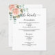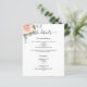 Ett modernt program/tidslinje för elegant bröllop. En vit bakgrund, dekorerad med ro guld, vattenfärgade ro och eukalyptus greenery. Anpassa och lägg till information om namn och bröllop. Svart färgad brev. Text på båda sidor. Lägg till webbplatsens URL för bröllop i QR-koden. 1 lakan = 1 program tryckt kant till kant.