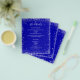 Observera att detta program är pappert och mycket tunt. Kuvert ingår inte. För tjockare program (samma design), besök vår butik. Ett modernt program/detaljer/tidslinje för elegant bröllop. En blå färgad i royalet som dekoreras med faux silver glitter-gnistor. Anpassa och lägg till information om namn och bröllop. Vit färgad brev. Text på båda sidor. Lägg till webbplatsens URL för bröllop i QR-koden.