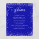 Ett modernt program, elegant bröllop, tidslinje. Royalets blå färgad med faux glitter-damm. Anpassa och lägg till information om namn och bröllop. Vit färgad brev. Om du har mer text kan du minska radavståndet.