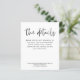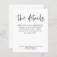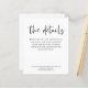 Information om enkel svartvit skript Bröllop. Ett prist budgetalternativ. Finns i ett SEMI GLOSS 110 lb-kort LAGRAR, vilket är standardalternativet (rekommenderas för inbjudningar), ELLER SATIN AVSLUTAR 80 lb PAPPER LAGRAR (perfekt för bilagor). Kuvert är ett extra som tillval och är något större än det storleka kortet. Enkel elegans för dina gäster till ge med den information de behöver för din bröllopsdag, med tryckt typografi i svart för huvudrubriken Information som kompletterar resten av texten som du lätt kan anpassa.