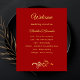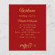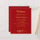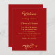 En röd färgad som dekoreras med gyllene blommigtar, snurrar. Anpassa och lägg till information om namn och bröllop. Golden färgad brev. Om du har mer text kan du minska radutrymmet och lägga till text på baksidan.
