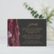 Den lämnat kant i eleganten har ett kort för modern detaljrikedom i bröllop ett inhägnat vattenfärgsagat i gräns som trimmas med faux guld glitter. Rubriken är i chic calligraphy-skript, med anpassadet text nedanför i guld-färgadens malltypsteckensnitt på en skiffersvart bakgrund. Den bakomliggande sidan har en matchande burgundi och guld-agate-design.