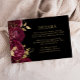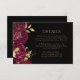 I den här eleganten har det moderna bröllop-kortet för inhägnad en burguddig röd blommigt gräns med guld faux foil löv. Anpassadet guld-färgad visas på en svart bakgrund. Den omvända sidan är helsvart.