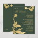 Moody mörk grönt och faux-guld-klassi-vintage-antique-romantiskt bröllopsinbjudan: Gränsuppgifter för gästinformationskort med botaniskt blad-grenar och elegant-klassiskt kalligrafi-skript. +++++++++ Enkel att anpassa med dina uppgifter!