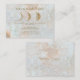 Elegantens minimalistiska nyålders tema faux guld zodiac waxing Måne Bröllop Information eller Fastighetskort med höggradig isig blå fläckbakgrund och dekorativ typsnittsfärgad karamelltypografi som lätt kan anpassas med dina egna textalternativ på båda sidor. Designad att samordna med fullt-uppsättning med pappra kontorsartiklar och tillbehör för att skapa ett helt enhetligt tema.