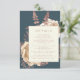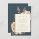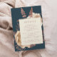 Kortet i elegant bröllop innehåller en lush, romantisk blommigt bouquet i elfenben med ro guld faux foil och glitter blad på en tealblå bakgrund. Anpassa ro rosa-texten i snyggt typsnitt på en elfenbenstorn. Kortets baksida är en solid teal.