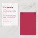 Förbättra din bröllop-svit med Chicen Retro Summer Bright Shock rosa-informationskort. Designat för att matcha den vibrerande shock rosa ger detta kort viktig information om mottagning, mottagning och transport i ett tydligt format och i snyggt. Det lekande återbildsteckensnittet för rubriker lägger till charm, medan den rena layouten garanterar läsbarhet. Det här kortet är ett bra komplement till ditt lysande och djärva bröllop-tema. Det är ett bra anpassade till kostym för dina unika behov.
