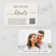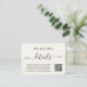 Kortet för bröllop-detaljer för chic Light kräm med "information" i ett skript för byte av snyggt. Ange din bröllop webbplats adress för att skapa en skannerbar QR-kod som dina gäster kan söka igenom för att få all information om bröllop, t.ex. anvisningar och platser. På baksidan är fotot överlagrad med namn och bröllop gått med tillsammans av ett hjärta.