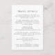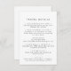 Kortet för reseuppgifter för bröllopsresor för chicens typografi är perfekt för ett modernt bröllop. Den enkla designen har klassiska minimalistiska svarta och vita typografi med en rustik boho-känsla. Anpassade i alla färg. Behålla designen minimal och elegant, som den är, eller anpassa den genom att lägga till egna bilder och teckningar.