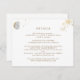 Kortet för vackert Bröllop-detaljer där du kan lägga till information som du vill ha. Konstruktion med ömtåliga faux guld-fylliga botaniska detaljer och måne och udda stjärnor. Möjligheten att lägga till detaljer är bara ett exempel. Om det behövs kan du markera den blå knappen "Redigera med Design Verktyg" och göra ändringar i text storlekt, stil, färg och position. En del av vår " Vita och Guld Enchanting and Celestial Collection". Besök hela samlingen på: https://www.zazzle.com/collections/white_and_gold_enchanting_and_celestial_collection-119073673253835730