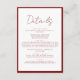 Information om Crimson Red Gräns Script Bröllop Tilläggskort