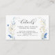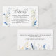 Blommigt bröllop-detaljkort med delikat handmålat vattenfärgat vild blommor i skuggor av dammigt blått, marin och gult med modernt kalligrafskript. Fullständigt anpassade bröllop-informationskort. Lägg till uppgifter om bröllop, ändra typsnitt, placera blommorna och färg framför och bakom kortet.