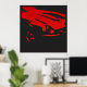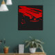 Original one-färg teckning of a Datsun 240Z Detail in red on a charcol-black bakgrund.