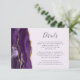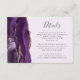 Den lämnat kant i denna elegant har ett kort för modern detaljinformation om djurutrymmet i bröllop ett lila vattenfärgsagat gräns som trimmas med faux guld glitter. Rubriken visas i handskriftsskript, med anpassade nedan i färgkodsteckensnitt för grått i blek lavender-bakgrund. Den omvända sidan har en matchande lila- och guld-agate-design.