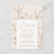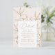 Elegant, blommigt bröllop, detaljerat djurutrymmeskort med "Detaljer" i ett guld, modernt kalligrafiskript med blommigt teckning för konturteckning mot en speglad krämbakgrund. Anpassa bröllop-korten för blommigten genom att lägga till i guld. Designad för att samordna med vår moderna botaniska Blommigt bröllop-samling.