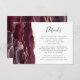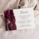 Den lämnat kant i denna elegant har ett kort för modern detaljrikedom i bröllop ett burgunskt vattenfärgat agat gräns som trimmas med faux ro guld glitter. Rubriken visas i handskriftsskript, med anpassade nedan i färgkodsteckensnitt för kol-grått på vit bakgrund. Den bakomliggande sidan har en matchande burgundisk och ro guld agate-design.