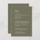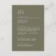 Det här moderna oliv grönt-detaljkortet för chic är perfekt för ett enkelt bröllop. Skogsodlingen har en unik och snyggt bohemisk typografi i en minimal grönt av skogsskogen i färg.