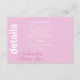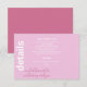 Med det här eleganten "Modern Italiana Sommar Bröllop-informationskort" får du ett rent serverif-skript som är perfekt inställt mot en vacker blandning av rosa- och lavender-nyanser och lägger till en liten bit romantik till din speciella dag. Det här kortet är idealiskt för att dela viktig information om bröllop, inklusive boende- och registerinformation, och ser till att dina gäster har allt de behöver till sitt förfogande. Med våra moderna bröllopsinbjudningar i Bröllop under sommaren kommer en perfekt att läggas till som avslutar beröring till din bröllopsinbjudningssvit och skapar ett sammanhängande och snyggt utseende som dina gäster kommer att följa.