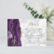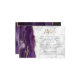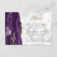 Den lämnat kant i denna elegant har ett kort för modern detaljinformation om djurutrymmet i bröllop ett lila vattenfärgsagat gräns som trimmas med faux guld glitter. Rubriken visas i handskriftsskript för färgad i guld, med texten anpassade nedanför i svart typsnitt på grått och vit marmorbakgrund. Den omvända sidan har en matchande lila- och guld-agate-design.