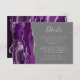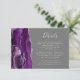 Den lämnat kant i denna elegant har ett kort för modern detaljinformation om djurutrymmet i bröllop ett lila vattenfärgsagat gräns som trimmas med faux silver glitter. Titeln visas i handskriftsskript, med anpassade nedanför i silver grått-typsnittet på en medelstor grått-bakgrund. Den omvända sidan har en matchande lila- och silver-agate-design.