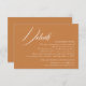 Ett modernt, minimalistiskt bröllop-kort för detaljdetaljer i djurutrymme har ett bränt orange med vit typografi som enkelt kan användas i personlig för att inkludera nyckel-uppgifter som logi och information för en webbplats i bröllop.