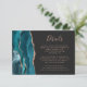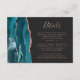 Den lämnat kant i denna elegant har ett kort för modern detaljrikedom i bröllop ett färgkort för färgämnen i tårblått vatten i gräns som trimmas med faux ro guld glitter. Rubriken visas i handskriftsskript, med anpassade nedanför i ro rosa-färgteckensnitt på en mörk charkol-grått-bakgrund. Den omvända sidan har en passande tealblått och ro guld-agatdesign.