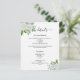 Ett modernt program/tidslinje för elegant bröllop. En vit bakgrund, dekorerad med vita vattenfärgade blommigtar och eukalyptus greenery. Anpassa och lägg till information om namn och bröllop. Svart färgad brev. Text på båda sidor. Lägg till webbplatsens URL för bröllop i QR-koden. 1 lakan = 1 program tryckt kant till kant.