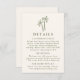 Lägg till en liten elegans till ditt bröllop-kontor med det här detaljkortet och visa en handdragen grönt handflatan träd överst på en mjuk krämbakgrund. Perfekt för strand-, tropisk- eller destinationsbröllop ger den här charmeringskonstruktionen utrymme för viktiga detaljer som logi, mottagningsinformation och din bröllop webbplats. Ett tänkbart och snyggt sätt att behålla gästerna informerade.