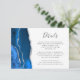 Den lämnat kant i denna elegant har ett kort för modern detaljinformation om djurutrymmet i bröllop ett royal blått vattenfärgsagat gräns som trimmas med faux silver glitter. Rubriken visas i handskriftsskript, med anpassade nedan i färgkodsteckensnitt för kol-grått på vit bakgrund. Den omvända sidan har en matchande royal blue och silver agate-design.