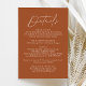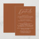 Kort för enkel information och elegant bröllop med handskrivet vitt skript blandat med modernt skript mot terracotta-bakgrund. Anpassa det minimalistiska bröllop-kortet med information om bröllop, t.ex. mottagningsinformation, hotellrum, bröllop webbplats osv. Bho terracotta bröllop-kortet är perfekt för det moderna bröllop.