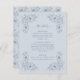 Kortet Dusty Blue Blommigt Details-hölje ger viktig information i ett format för lodrät av elegant. Det här kortet har en dammig blå bakgrund som är försedd med ömtåliga blommor av vintage och ett mönster som passar på baksidan, vilket garanterar konsekvens och charm i hela bröllop-skrivbordet. Det är perfekt att förmedla viktiga detaljer med tidlös elegans.