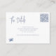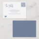Elegantens minimalistiska skript på bröllop webbplats innehåller information om dammigt blått och vitt inkapslingskort med QR CODE (som skapas automatiskt med din webbplatslänk). Ett enkelt sätt att informera dina gäster om din webbplats, be dem till OSA online eller inbjudan om mer information om din ceremoni och mottagning.
