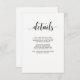 Kortet för gästinformation om elegant och chic bröllop har en vit bakgrund med modern svartfärgad typografi.
