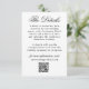 all viktig information med detta kort för elegant svartvitt bröllop. Framsidan har "The Details" (Information) i förfinad svartfärgad kalligrafi på vit bakgrund, med utrymme för att anpassa rum, transport, mottagningsinformation med mera. Lägg till webbplatsen för bröllop nedan, tillsammans med en praktisk QR-kod så att gästerna enkelt kan söka igenom och få tillgång till informationen om onlinen bröllop. Kortets baksida visar ditt monogram initialer som är inramat av en vit vapensköld av botaniska blommigtar på en slående svart bakgrund, med namn och bröllop-datum som elegant visas under. Perfekt för klassiska, formella eller moderna bröllop-teman.