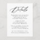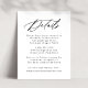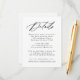 Vår Elegant Calligraphy bröllop-samling har ett vackert, svart kalligrafiskript med vit bakgrund. Anpassa det här passande kortet för inneslutning i bröllop med viktiga bröllop-detaljer som hotellrum, bröllop webbplats, researrangemang, välkomstmottagningar och mycket annat. Kortet för svarta och vita bröllop-uppgifter är perfekt för både formellt och avslappnad bröllop under vilken säsong som helst.