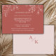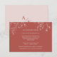 Elegant Blommigt Boho-inbjudningskort med lekfull stig av vilda blommor i de övre hörnen som visar din händelseinformation i rik och förfinat typsnitt mot en terracotta-bakgrund. Din monogram initialt på baksidan. Anpassa den med dina egna detaljer. Lägg till webbplatsen bröllop om tillämpligt. Om du vill göra ytterligare anpassningar (bakgrund färg, teckensnitt stil och färg) klickar du på länken "Anpassa" och användor verktyg som designen för att ändra mallen. Perfekt för alla säsonger.