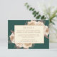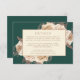 En botanisk elegant med elfenbensbuketter med blommigt av buketter som putsats med ro guld faux glitter foliage på mörkens tealbakgrund. En elfenbensrektangel ramar den klassiska dammiga ro-texten. Kortets baksida är en solid teal. Idealisk för ett fallbröllop.