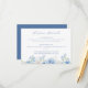 Kortet i elegant bröllop har en vattenfärgsfärgad blommigt gräns med vackra blommor i varierande blå nyanser och ett känsligt kalligrafiskt skript.