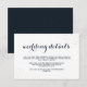 Elegant glam mörk blått text och vit bröllop-gästkort med delikat faux metallisk punkt på framsidan och baksidan.