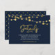 Den här eleganten Blue Strings of Ljus Bröllop Details card (blå strängar) innehåller strängar av ljus och "Detaljer" i ord i faux-guld-folie mot mörk blått bakgrund. Kortet har en polka punkt mönster på baksidan. Kolla in andra matchande objekt här https://www.zazzle.com/collections/strings_of_lights_faux_gold_celebration_collection-119311942951401241?rf=238364477188679314 Anpassa det här kortet genom att ersätta platshållartexten i mallen. Om du vill ha fler alternativ som att ändra teckensnittet och det är storlekt/färg klickar du på knappen "Anpassa". *Observera att Zazzle Watermark som visas i zoomförhandsvisningen INTE visas på den slutliga tryckta produkten © Rosewood and Citrus