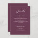 Fyll i bröllop-sviten med Eleganten Burgundy Bröllop-minneskort, designat för viktiga detaljer med dina gäster. Den här designen har en rikens burgundära bakgrund och en sofistikerad kalligrafiskriptitel, och den exuderar otidsenlig charm och enkelhet. Perfekt för att tillhandahålla information om boende och bröllop webbplats, det här kortet för hölje kompletterar på ett utmärkt sätt den inbjudan till Rosa Watercolor Wedding Collection, vilket garanterar en sammanhängande och förfinad syn på din speciella dag.