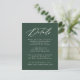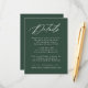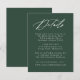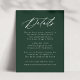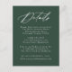 Vår Elegant Calligraphy bröllop-samling har ett vackert, vitt kalligrafiskript med en bakgrund för grönten av skogen. Anpassa det här passande kortet för inneslutning i bröllop med viktiga bröllop-detaljer som hotellrum, bröllop webbplats, researrangemang, välkomstmottagningar och mycket annat. Detaljkort för grönt bröllop är perfekt för både formellt och avslappnad bröllop under en säsong.