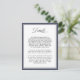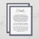 Det här enkla kortet för höljet i elegant bröllop är designat för att ge dina inbjudna gäster speciella uppgifter och information om din bröllopsdag. Det vita kortet är kantat i marint blått med en tunn svart linje för att lägga till lite färg i designen. Du kan använda det här kortet för att ge hotellinformation, köranvisningar, bröllop-register, bröllop webben och andra uppgifter som du vill tillhandahålla. Redigera bara exempeltextmallen med din information. Du kan flytta runt texten, ändra teckensnittstypen och bakgrunden färg på det här kortet.