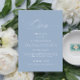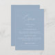 Den här moderna, dammiga, blåa bröllopsinbjudan - kort/ djurutrymmeskort innehåller klarfärgad kalligrafi och klassisk typografi. Det är ett underbart val för er dammiga blåtemade bröllopsdag. Anpassa det här informationskortet genom att lägga till information på bröllop, t.ex. klänningskod, mottagning, logi, webbplats med mera. Alla detaljer är redigerbara och lämpliga för alla säsonger.