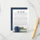 Det här vackra bröllop-kortet är designat för ge du extra för spelar ingen roll information som dina gäster kan behöva, inklusive webbplats, register, mottagning, resor, logi eller andra uppgifter. Kortet har en fantastisk utformning med en enda reflekterande dammig blå färgad ro och en äldre manusförfattare med texten "detaljer". Baksidan är ett marmorerat stålblått grått färg.