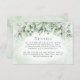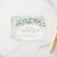 Ge bjöd in gästerna alla viktiga detaljer med det här fina informationskortet för grönt bröllop. Den har en delikat drömbukett av botaniskt eukalyptus vattenfärgsgrönt som bleknar ner i bakgrunden, med en sage grönt vattenfärg struktur och elegant modernt monogram i ett lush foliage-andetag på baksidan. Sök efter matchande produkter för att slutföra inbjudan, i samlingen.