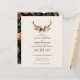 Budget Rustic blommigt och stag antlers bröllopsinbjudan och informationskort. Med vackra svarta, rosta, terracotta och sage grönt pampas, vattenfärgsdetaljer för gräs eucalyptus. Den här moderna bröllopsinbjudan kommer säkert att sätta stil för din stora dag.
