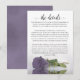 Det här vackra bröllop-kortet är designat för ge du extra för spelar ingen roll information som dina gäster behöver, inklusive webbplats, register, mottagning, resor, logi eller andra uppgifter. Kortet har en strålande design med en enda reflekterande lilak, lavender eller dammig lila färgad ro och en lacy script calligraphy title som läser "informationen". Baksidan är ett marmorerat ljus lila färg.